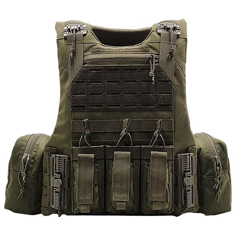 Las opciones de personalización casi ilimitadas son posibles gracias a los accesorios molle. Contando con un bolsillo con cremallera en la parte delantera. El acolchado de espuma integral en la parte delantera y trasera, el forro de malla 3D, los canal de ventilación en la línea central, el acolchado de las hombreras y los laterales regulables garantizan un ajuste adecuado y una comodidad superior para el usuario final.
